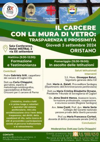 Oristano: La Caritas Diocesana e il Garante dei diritti delle persone private della libertà personale del Comune organizzano il convegno “Il carcere con le mura di vetro: trasparenza e prossimità”