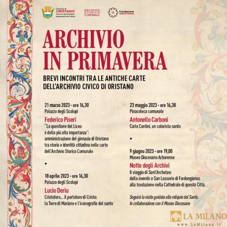 Oristano: quattro appuntamenti, uno al mese per quattro mesi, per raccontare un pezzo della storia di Oristano attraverso la carte d’archivio. È “Archivio in primavera”, iniziativa a cura dell’Assessorato alla Cultura del Comune di Oristano, della Fondazione Oristano e dell’Archivio Storico comunale, che dal 21 marzo al 9 giugno offrirà quattro eventi dedicati a fatti […]