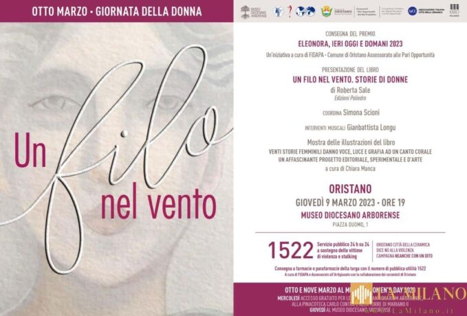 Oristano: “Un filo nel vento” giovedì 9 marzo al Museo Diocesano Arborense. “Un filo nel vento” è il titolo della serata in programma giovedì 9 marzo, alle 19, al Museo Diocesano Arborense, di cui saranno protagoniste le storie delle donne, nella vita professionale o tra le mura domestiche, nella quotidianità, nell’arte o per fatti straordinari. […]