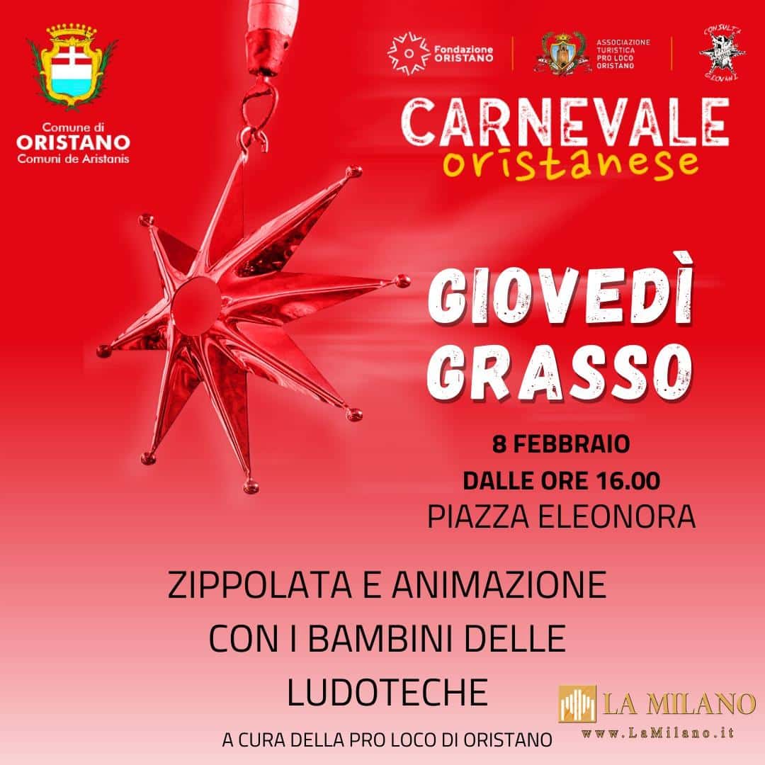 L’8 febbraio, giovedì grasso, a partire dalle 16, il tradizionale appuntamento la Zippolata organizzata dalla Pro Loco che quest’anno si trasferisce da piazza Roma a piazza Eleonora.